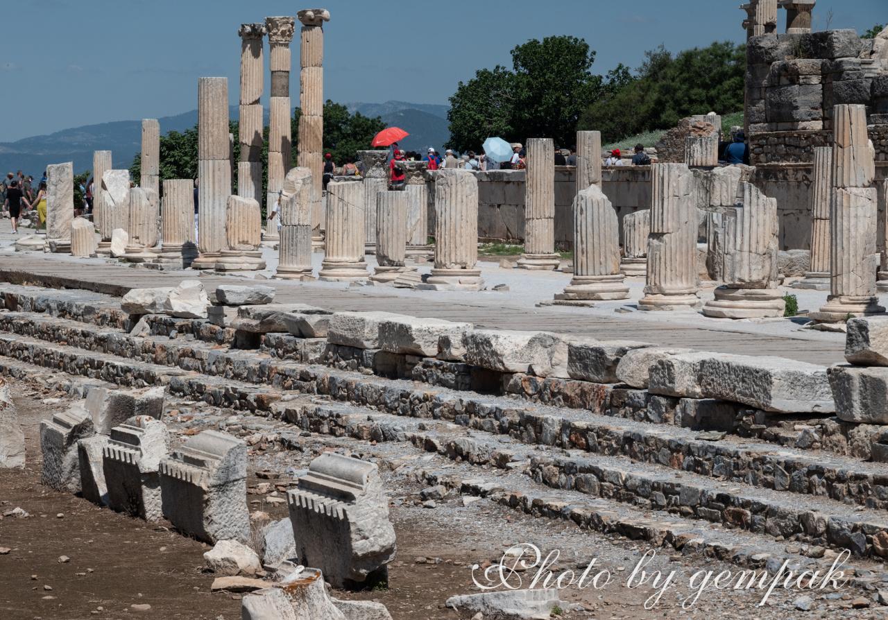 クレオパトラがアントニウスと歩いたであろう大通り、クレオパトラの陰謀により実の妹アルシノエが幽閉され、最後に毒殺された場所でもあり、イエスが磔刑になったあと母マリアが使徒ヨハネとともに晩年を過ごしたところでもあり、アルテミス信仰が根強かったこの地で、ローマ帝国でもっとも早くからキリスト教が広まった都市でもある。