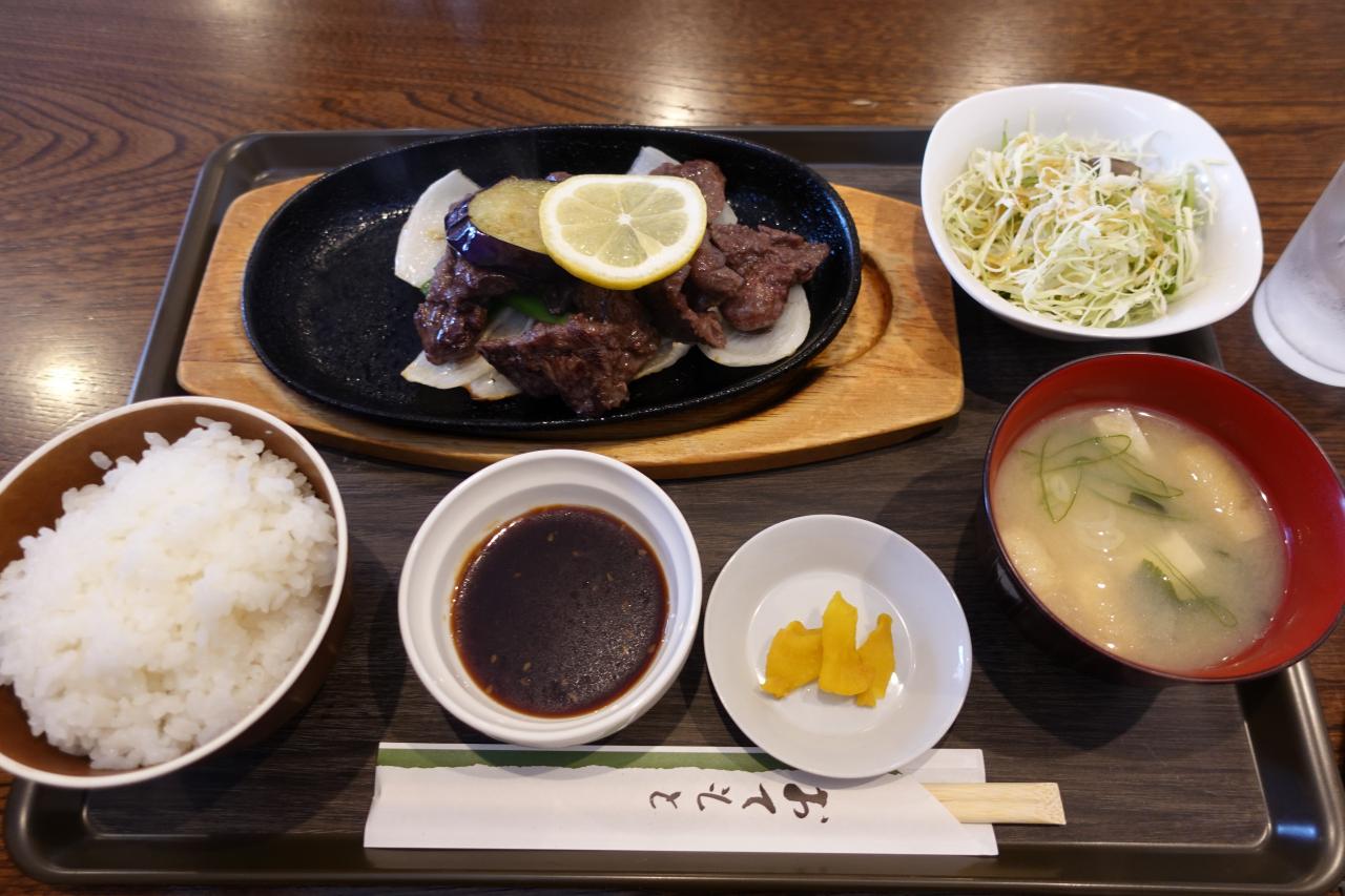 10分少々で、馬焼肉定食です。まだ鉄板がジュウジュウ言うてます。