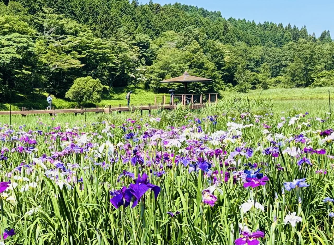 山々に抱かれた花しょうぶは今年も見事に咲いていました。
