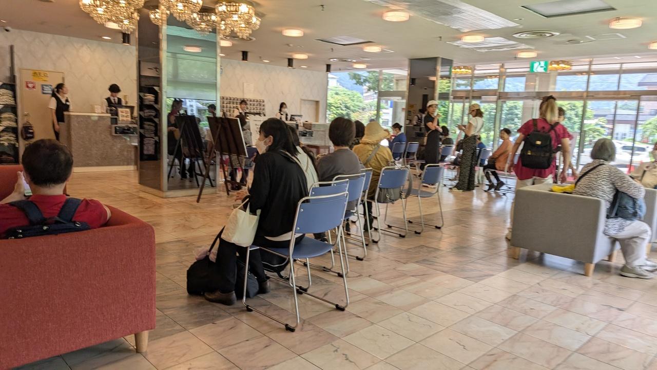 13時の施設予約来並ぶ人々