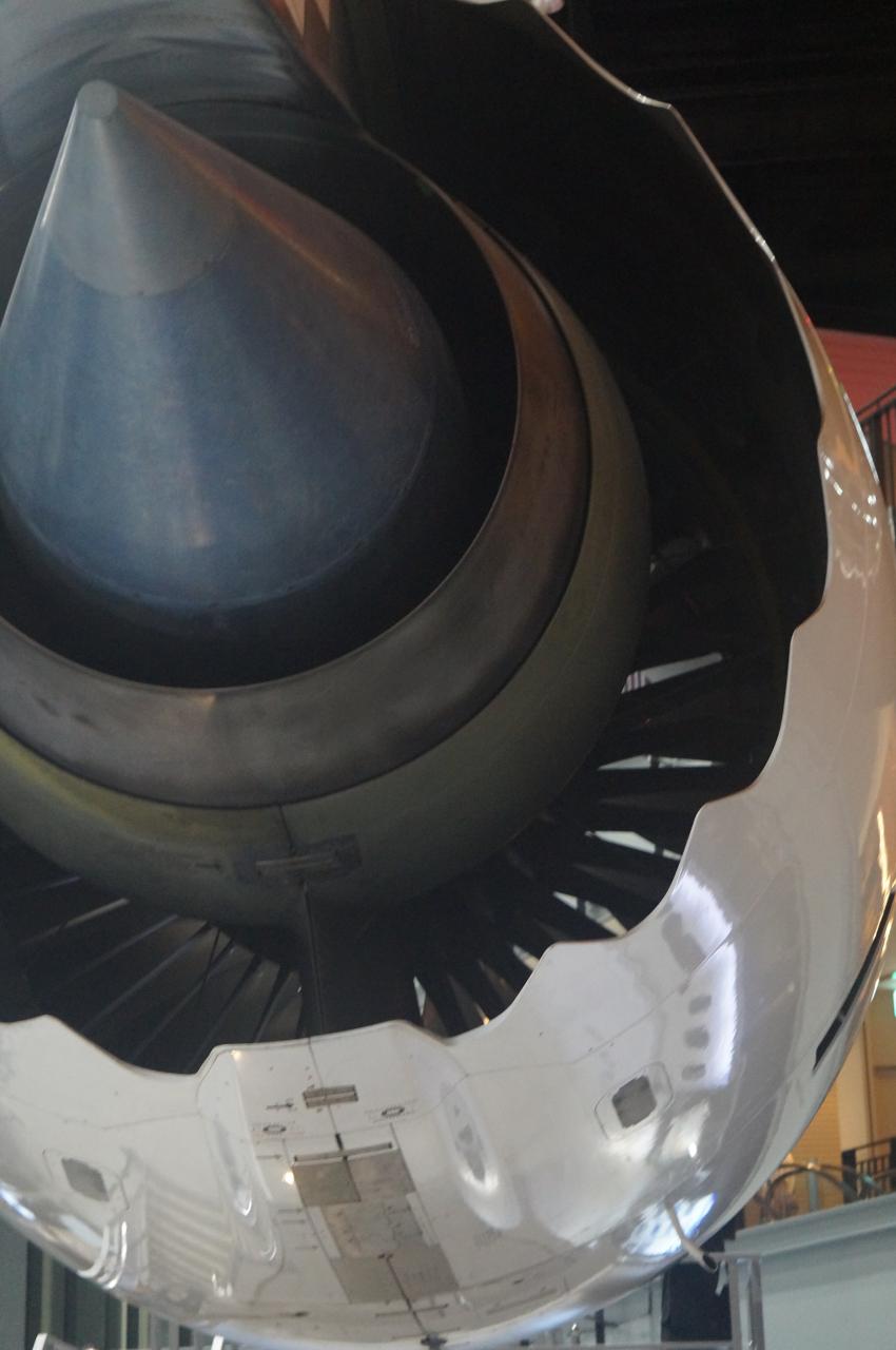 次に一番人気のコックピット見学を時間予約しましょう。最大7名が3分間ずつといったペースで進みます。スタンバイ列に列んでも良いのですが、機体を外から見学している間にすぐ予約時刻が来るので、ファストパス的な時間予約がおすすめです。列んでいる間にも、普段は見ることのない飛行機の真下に付いている機器、例えば客室内へ空気を取り込むエアインテークなどを観察できるのでより興奮します。左右対称ではないことも新たな発見でした。
