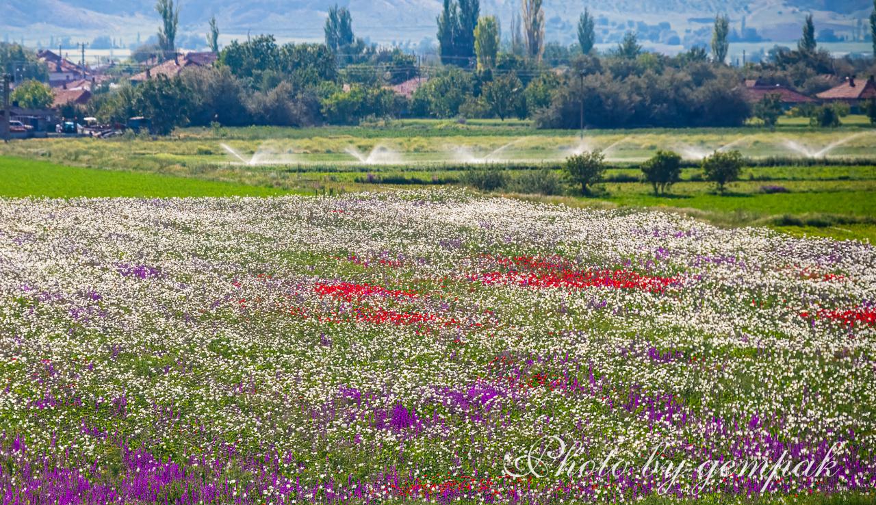 やがて、あちこちに花畑が現れるようになった。ツアーガイド氏によると、ケシの花だという。