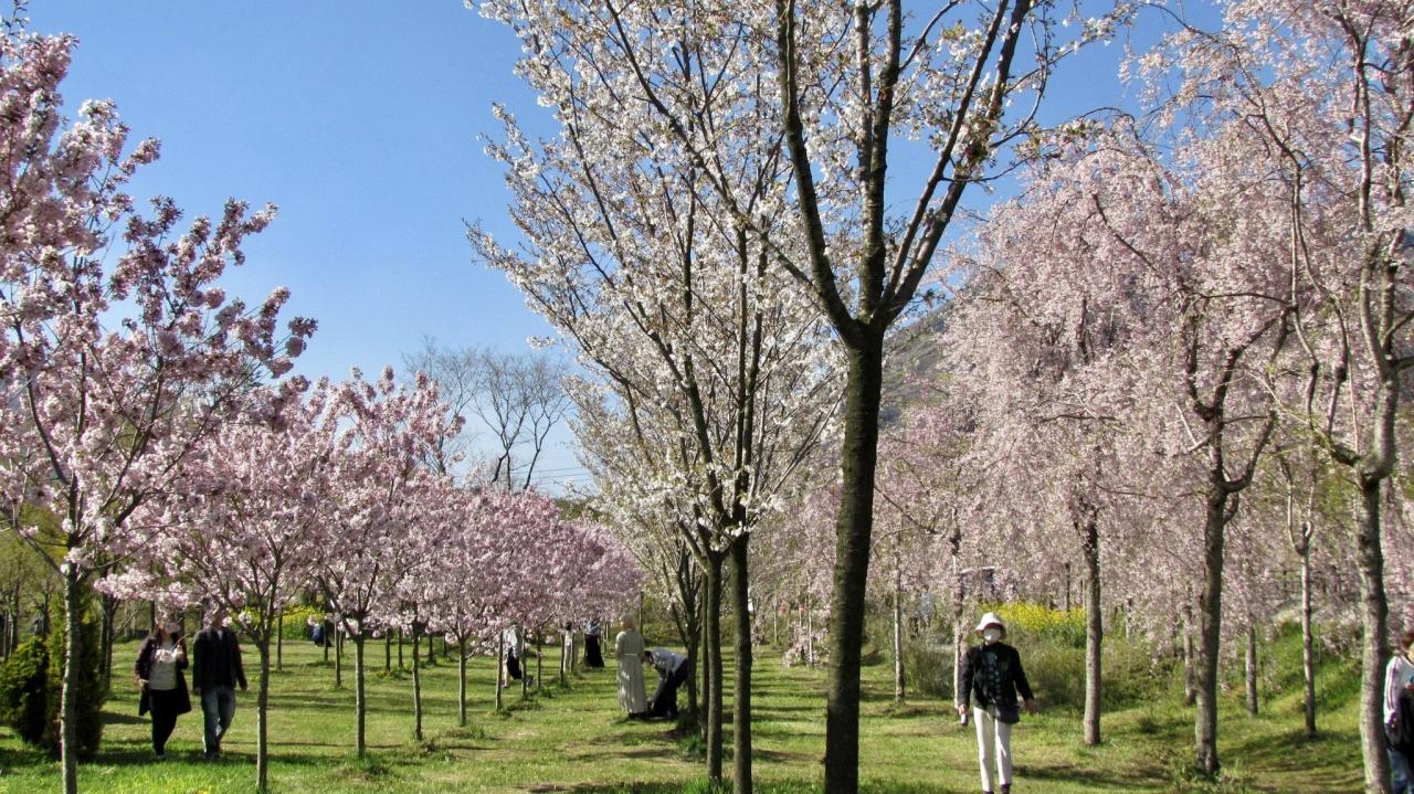 その後、毎年少しづつ桜を増やし、現在は10種類以上の桜が1万本以上植えられて見事な絶景地となっている。
