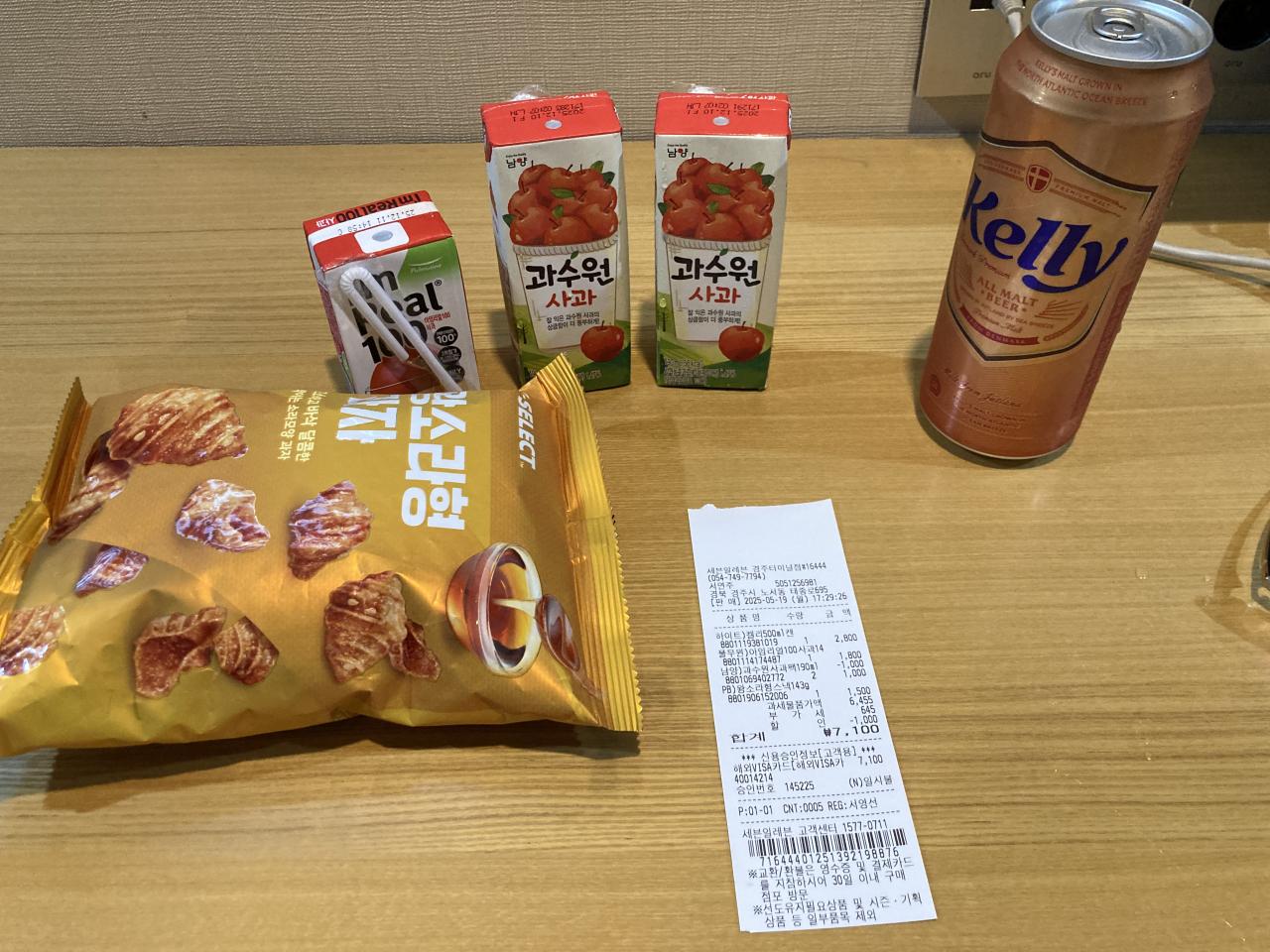 この日は暑かったので大量のジュースとビールとお菓子を買って夕食としました。71000ウォン(761円)でした。この日は水分をしっかりとって風呂に入ってゆっくり寝ました。