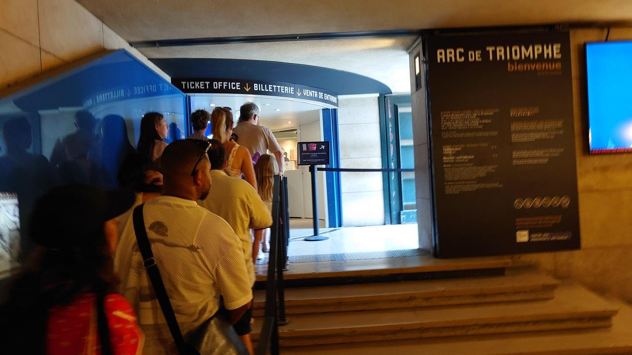 凱旋門の上まで登ろうということになった。「それは無理」と思ったが、みんな行くというので仕方なく付き合うことにした。屋上テラスに行くには16€ (2,700円)かかる。284段の螺旋階段を頑張って上がると、暑さと疲労でふらふらして、もう「レティシア」を口ずさむ余裕はない。