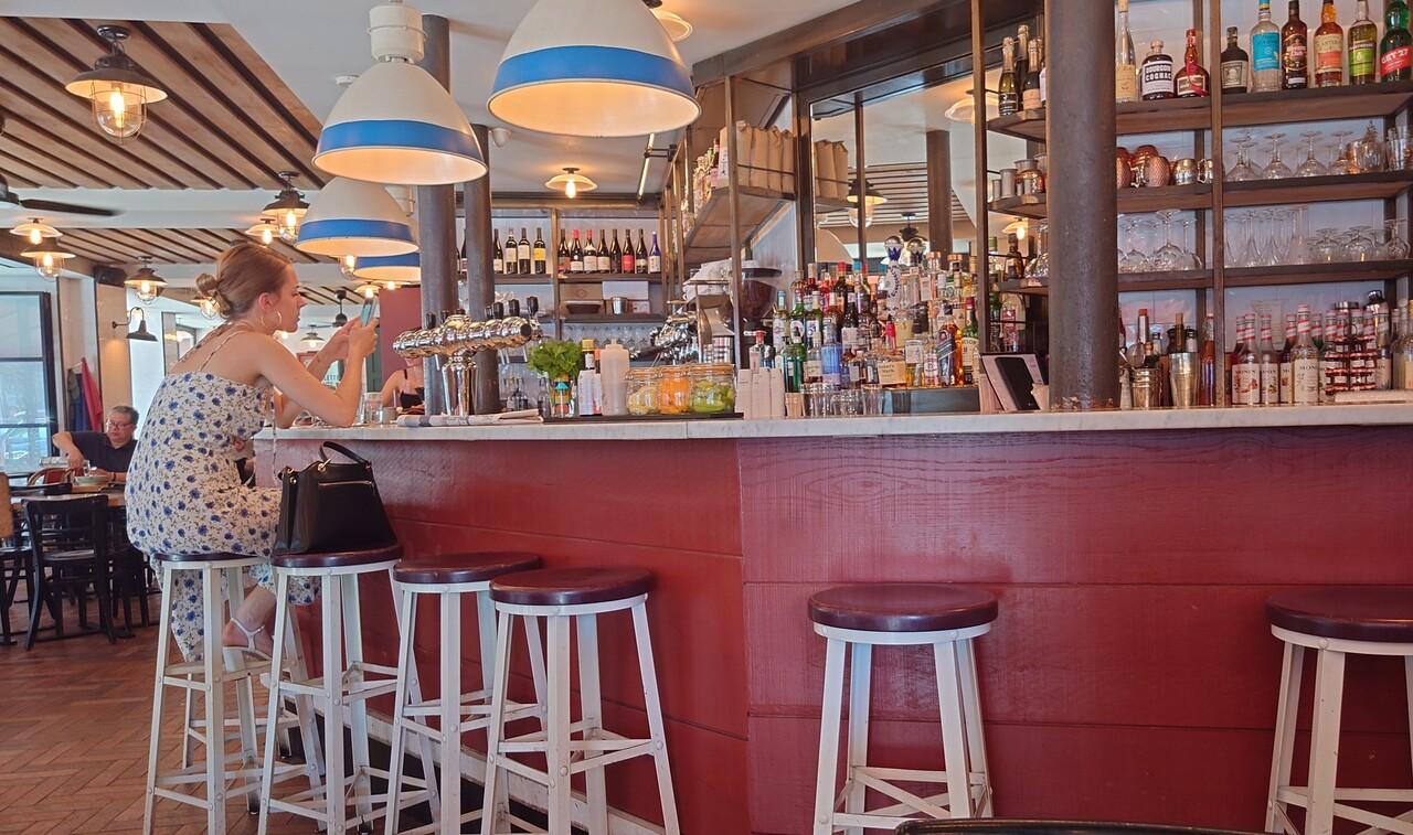 暑くてバテてきたので、どこかで休憩しようということになる。店を探し歩いて、適当なブラッスリーに入った。 -