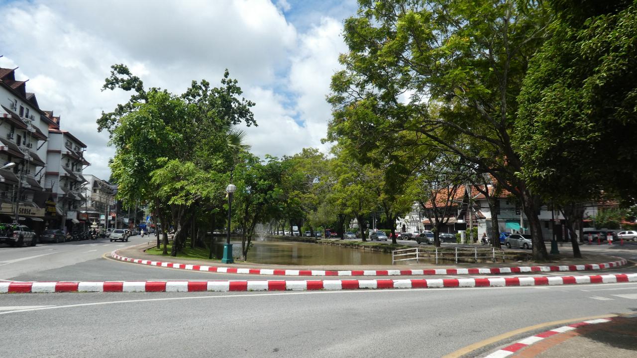三王記念像を横目で見て、ホテルに向かい、チェンマイナイトバザール方向にいく。
