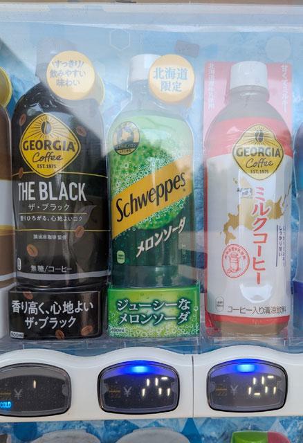 喉が渇いたので、自動販売機で『北海道限定』シュエップスのメロンソーダ170円を買ってオットと回し飲み。