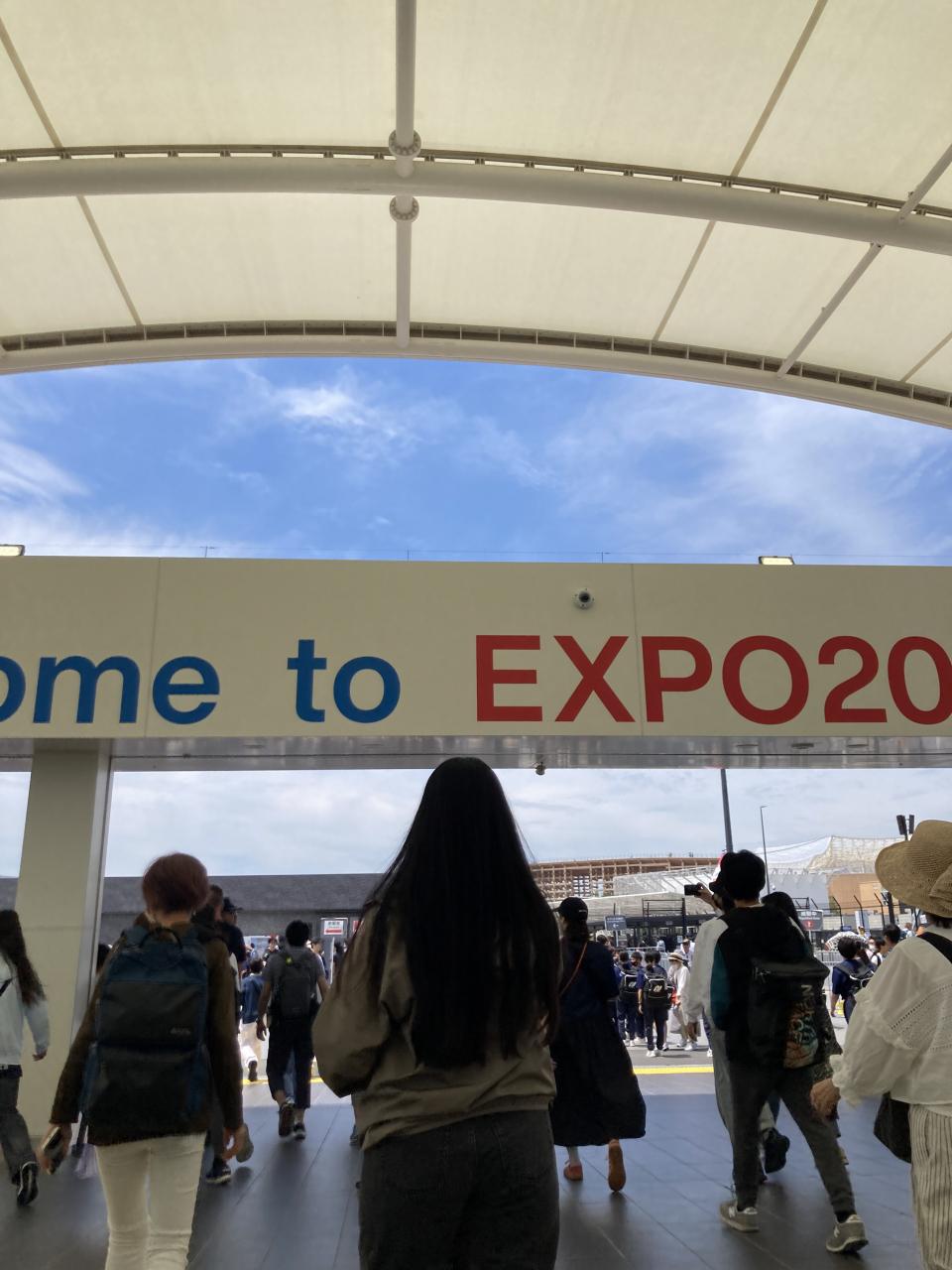 本町での乗り継ぎ時の人の多さで、コレはやばいと思い始め、乗ったメトロもぎゅうぎゅうで、ようやく夢洲へ。 -