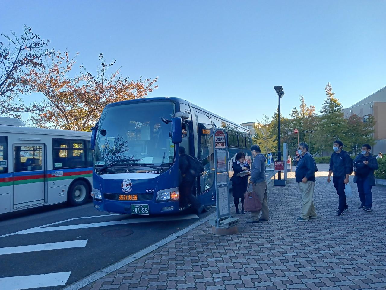 バスは観光バスタイプですが、11月に運行されている京都駅発「湖東三山めぐり」の定期観光バスの間合い使用のようで