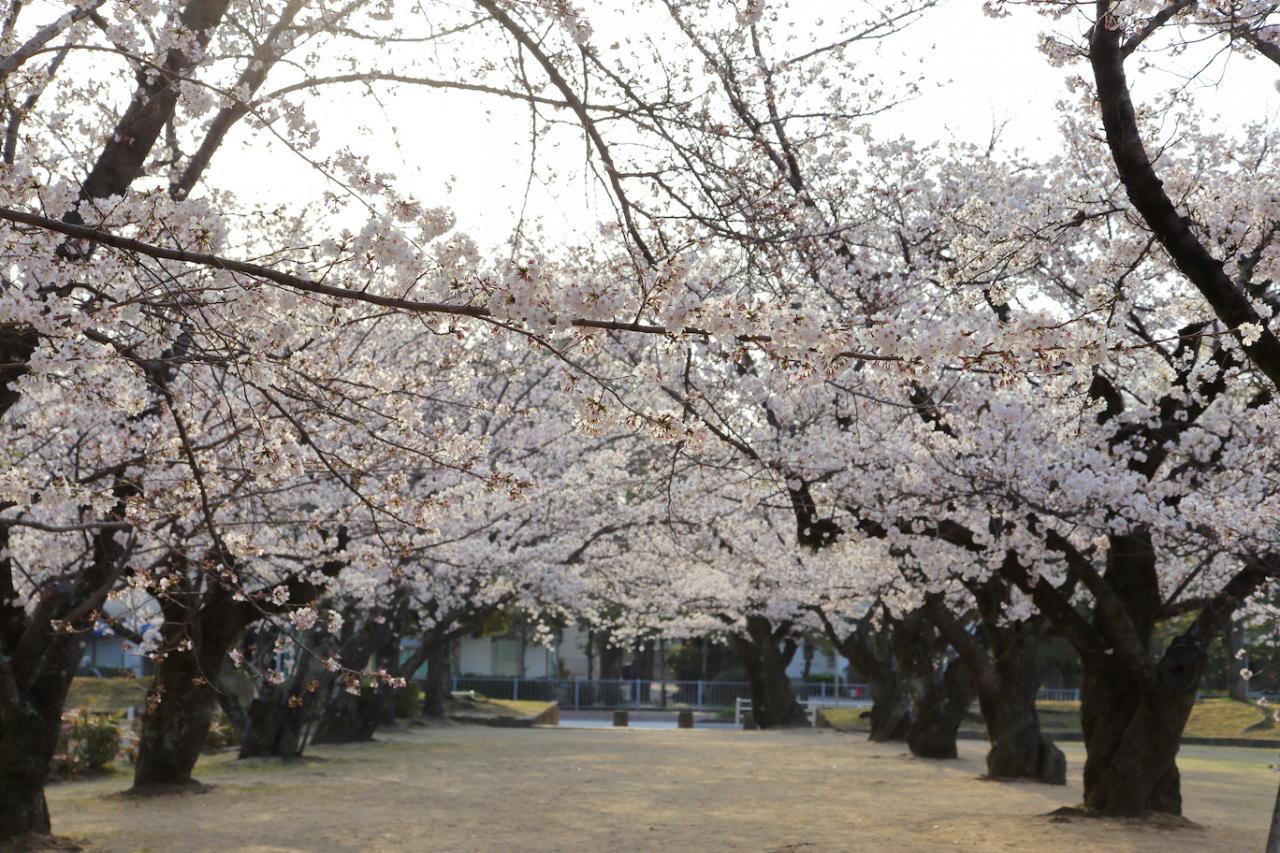 写真の通り桜は植えられていますが、溢れかえる、というわけでは無いです。