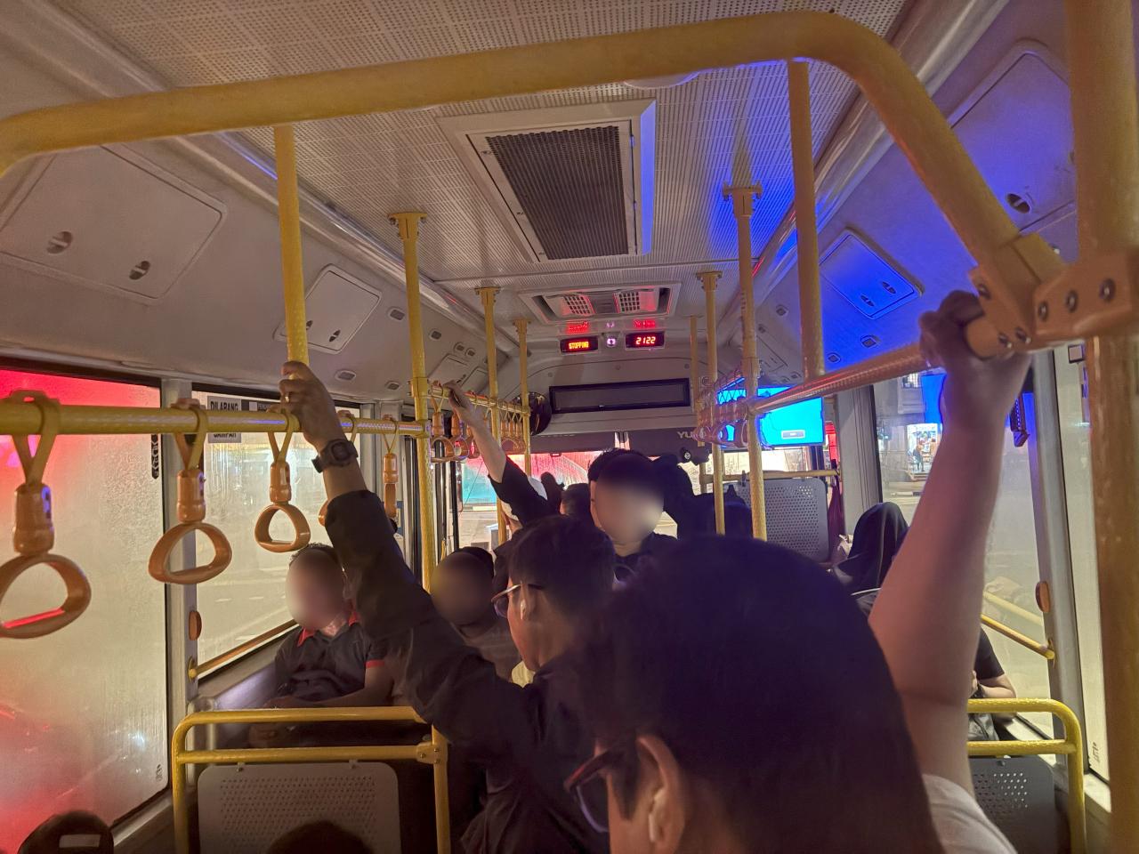 列での待ち時間は短いですが、バスの中は立ったままです。 -