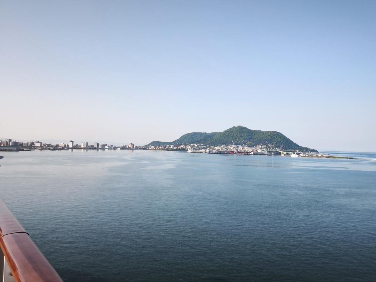 クルーズ3日目の朝、函館港への入港は7:30の予定でしたが、朝6時過ぎにバルコニーに出てみると、すでにすぐそこに港が迫っていました。