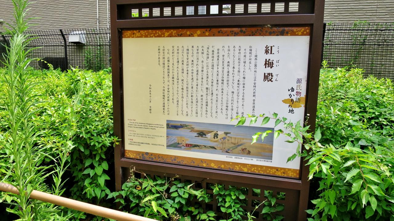 公園の中にある「陽成院跡」は、陽成上皇(869-949)の御所で、この夷川公園一帯には、南北二町に及ぶ陽成院と呼ぶ邸宅があり、元慶8年(884)譲位した陽成上皇が、内裏からこの邸に母の皇太后藤原高子と共に遷幸して御所とした。上皇の崩御後、紫式部は「源氏物語」でこの地を光源氏の二条院に想定し、藤壺の姪にあたる紫上を迎え入れている -
