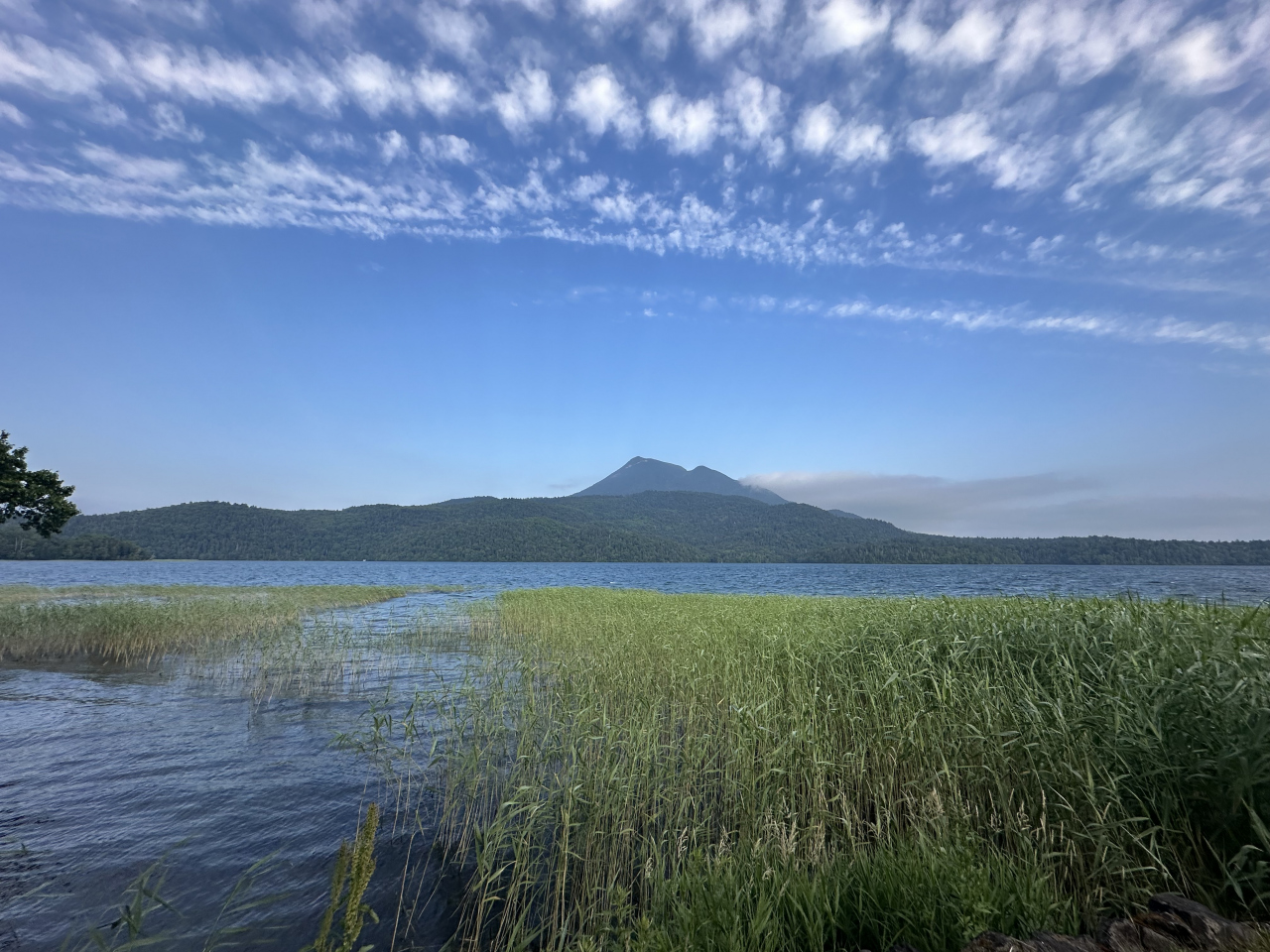 雄阿寒岳、雌阿寒岳、フップシ岳の三つの山が見えるのは湖上からのみだそう。