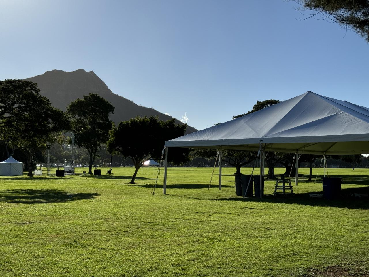 ゴールのカピオラニ公園でJALテントを提供しています。