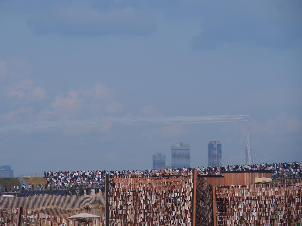しばらくすると、万博記念公園、ひらかたパーク上空を飛行したブルーインパルスが夢洲に戻ってきました!