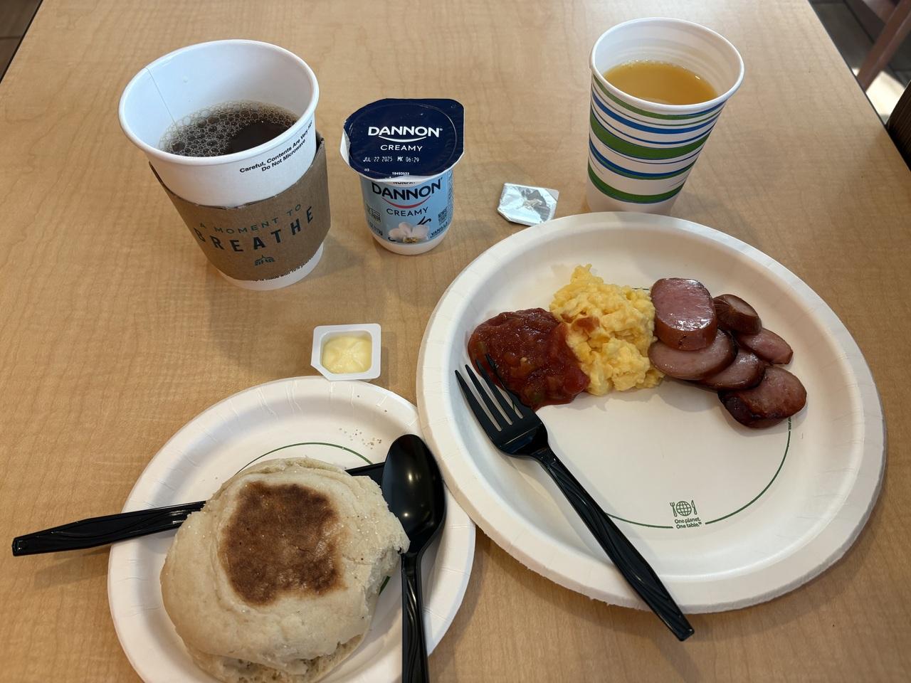 オレンジジュースもコーヒーもすごく美味しく、イングリッシュマフィンももちもちでした。 -