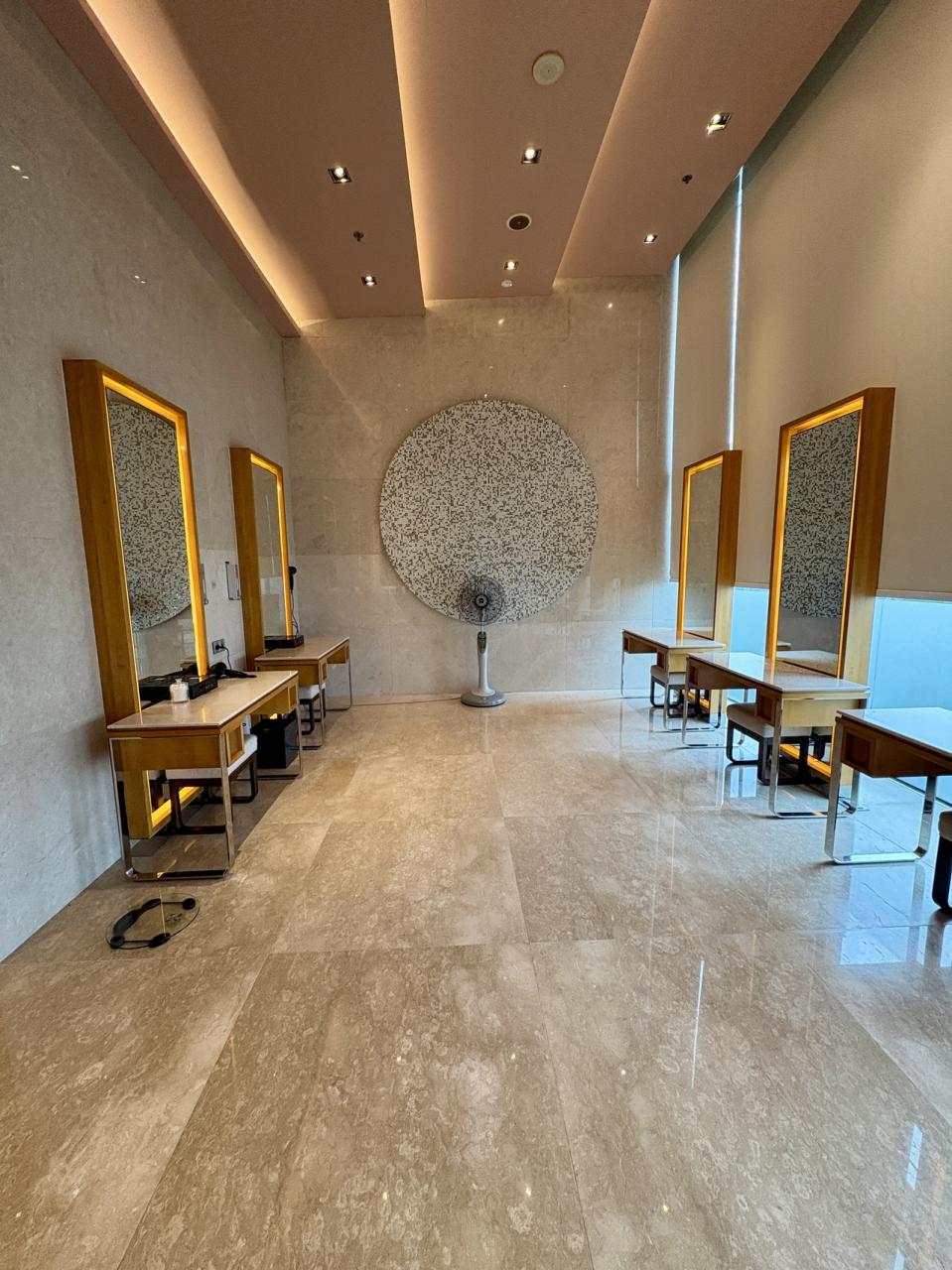 マリオットプラチナメンバーはラウンジでチェックインになります。ラウンジに通されました。それにしても豪華な廊下。