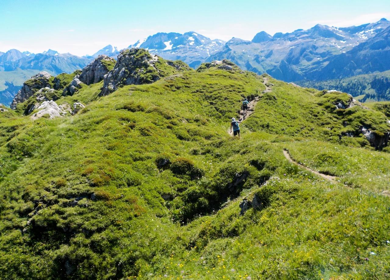 この辺りでアルプスフラワートレイルは道が分かれて左に曲がっていきますが、グリデン高地環状トレイルはそのまま直進です