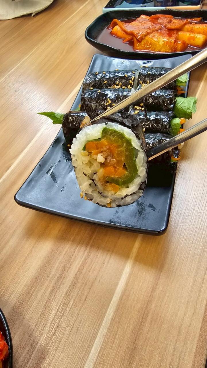 どこでご飯食べようか?と迷ったのですが、隣に忠武キンパのお店があることに気づき、キンパを食べることにしました。