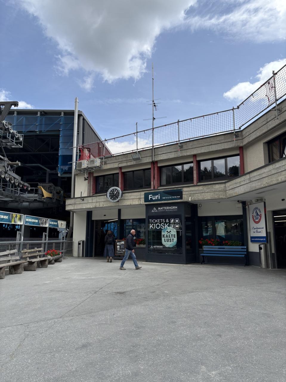 ツェルマットのロープウェイ駅は少し外れた場所にあるので、ちょうど良く町を散策できました。