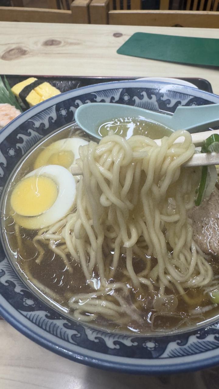 ラーメンセットでお寿司が付いてお腹いっぱいになります。