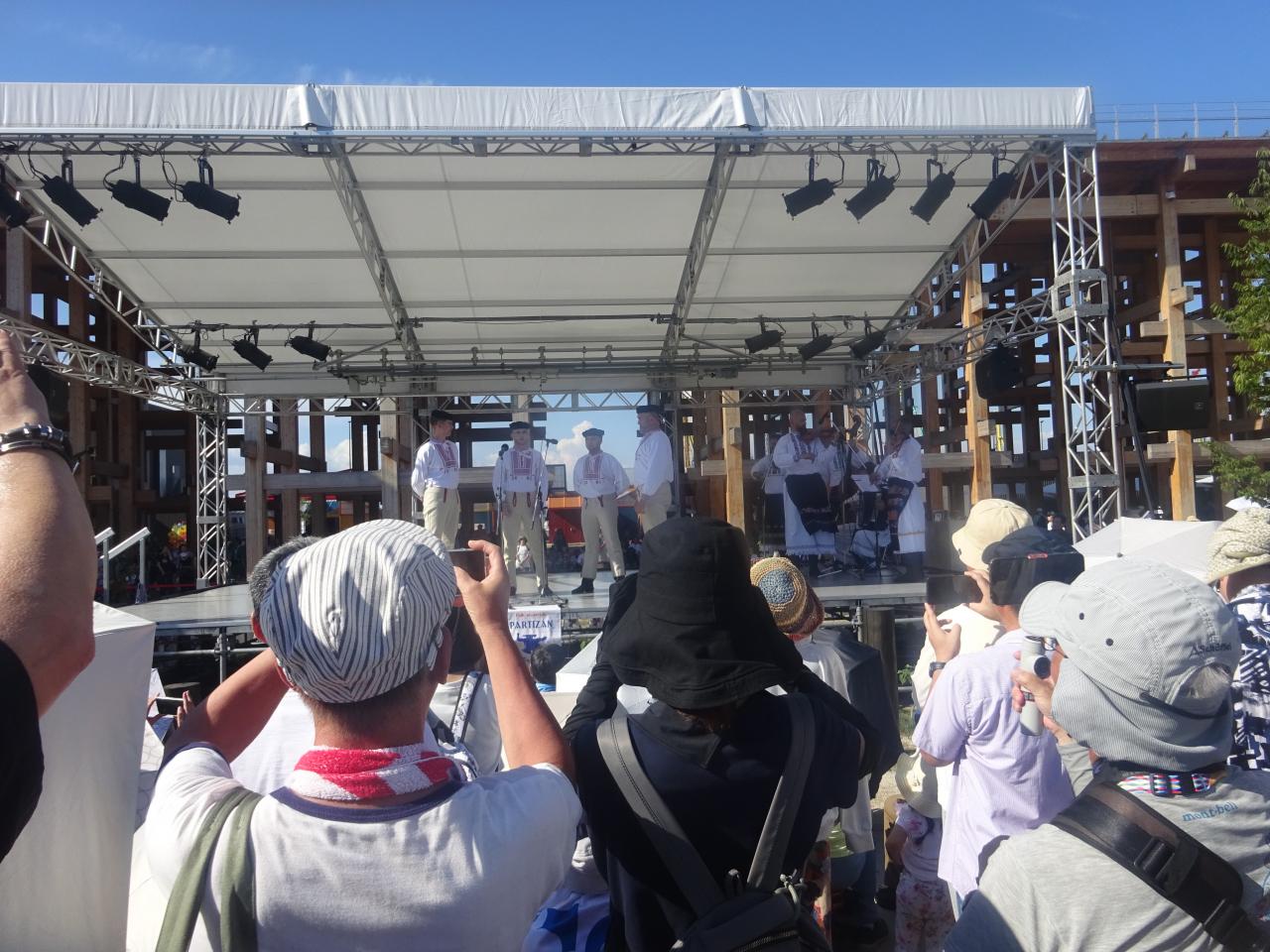 ポップアップステージ北で行われたスロバキアの「民族芸能団」の演奏を聴きます。