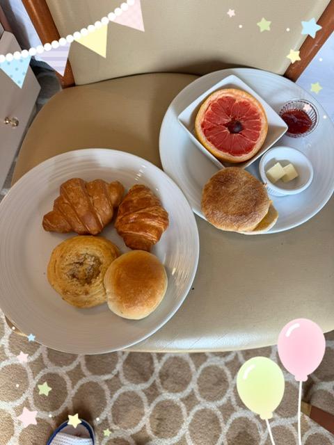 急ぐ旅でもないし こんな時にルームサービスを頼んでわちゃわちゃしたくないというのが2人の意見 クルーズ船に乗る前から きめていました