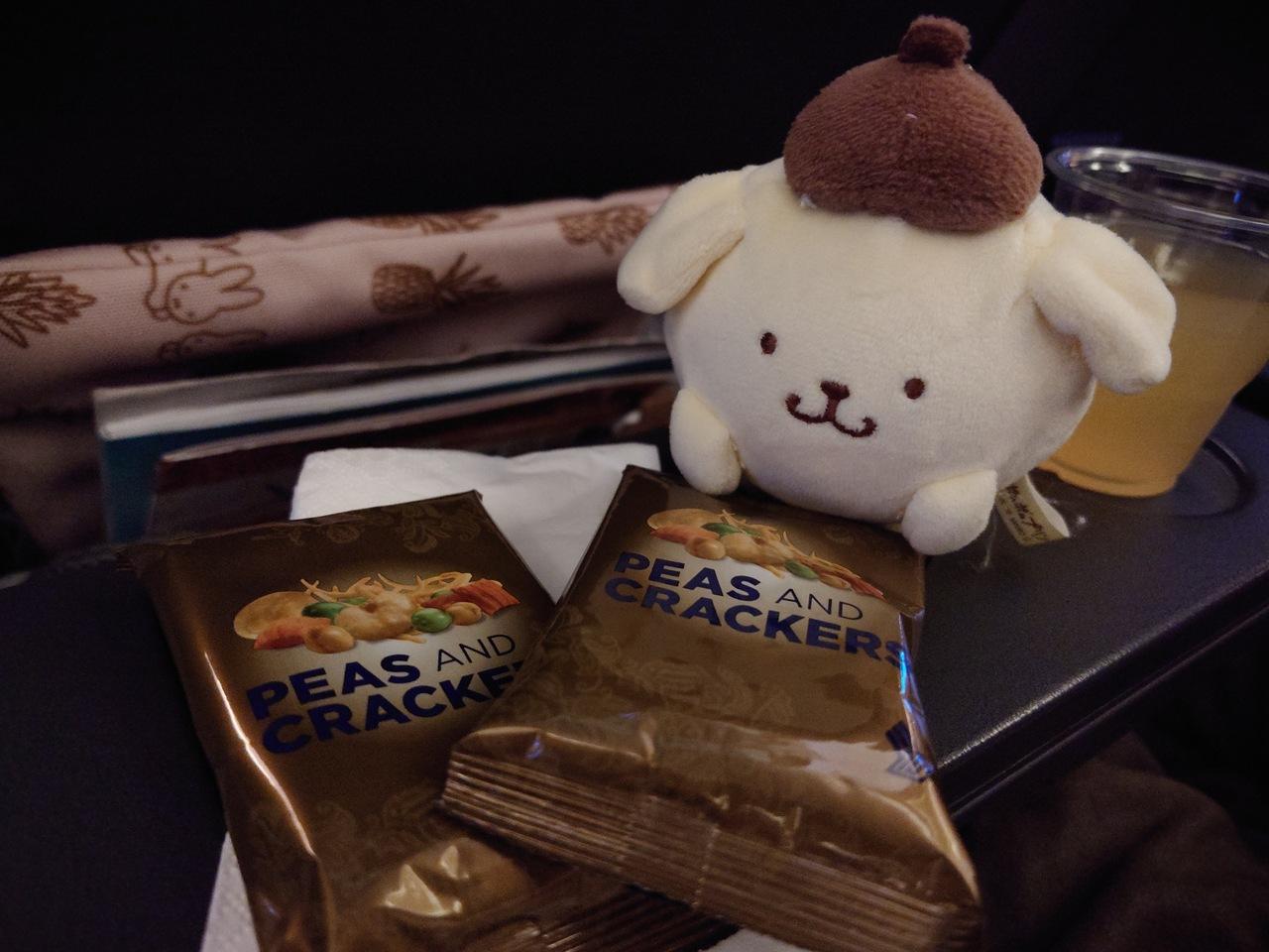 満席じゃないからなのか、スナックを2個ずつ配ってた。