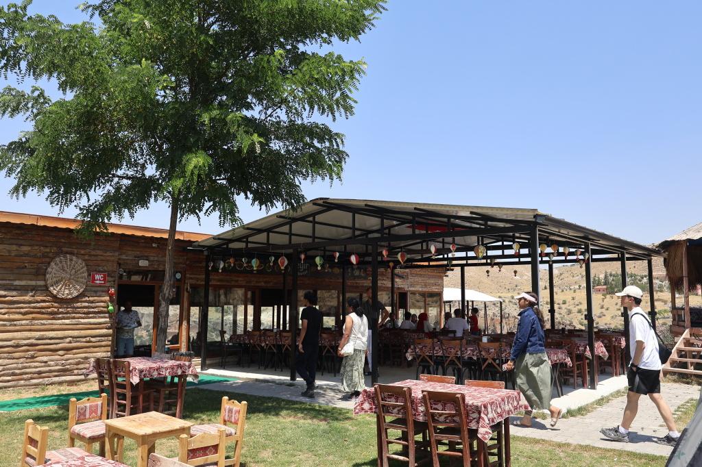 カッパドキア名物の壺ケバブを注文。具材を壺に入れ焼き上げるものですが、たぶん、奥の厨房で仕上げたものをパフォーマンスでいちおう火にかけて、