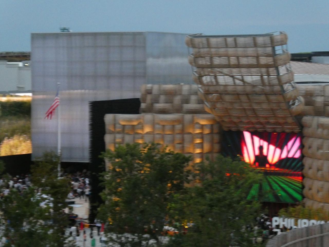 夜の万博はゲート、各パビリオンともにライトアップされており 綺麗でしたし、見物しにくいことはありませんでした。また それぞれの広場で、各種のイベントが開催されていて、ずいぶんにぎやかでした。