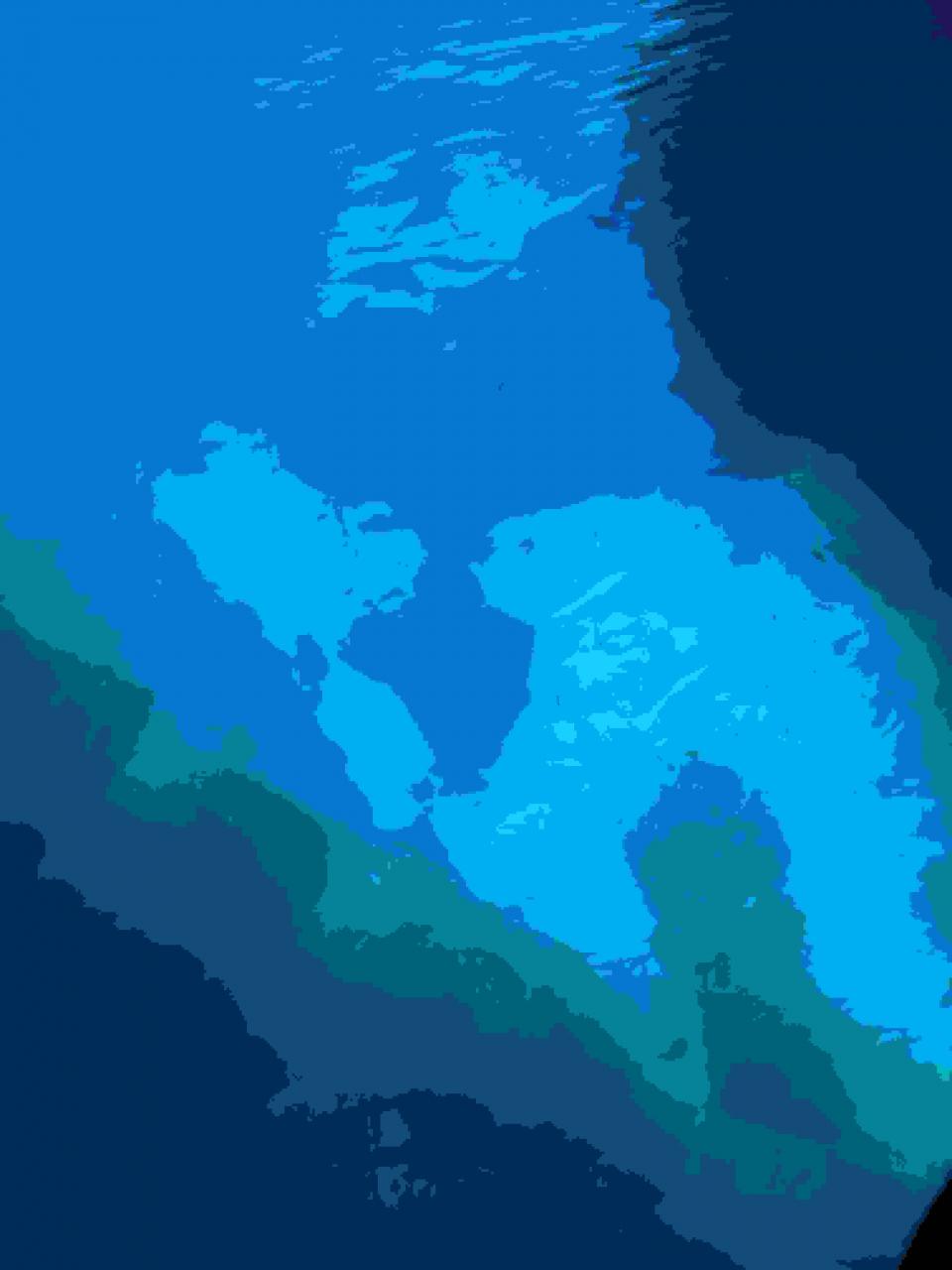 水の透明度が非常に高く、海底の砂や岩、魚がきれいに見える