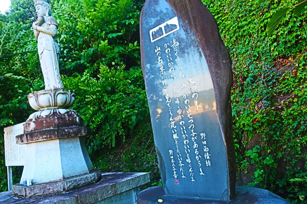 野口雨情の七つの子の石碑と並んでいます観音山公園 公園・植物園