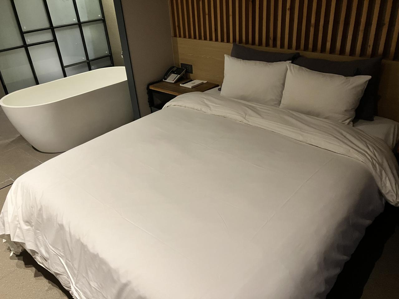 ベッド横のバスタブもアパホテルを思い出す