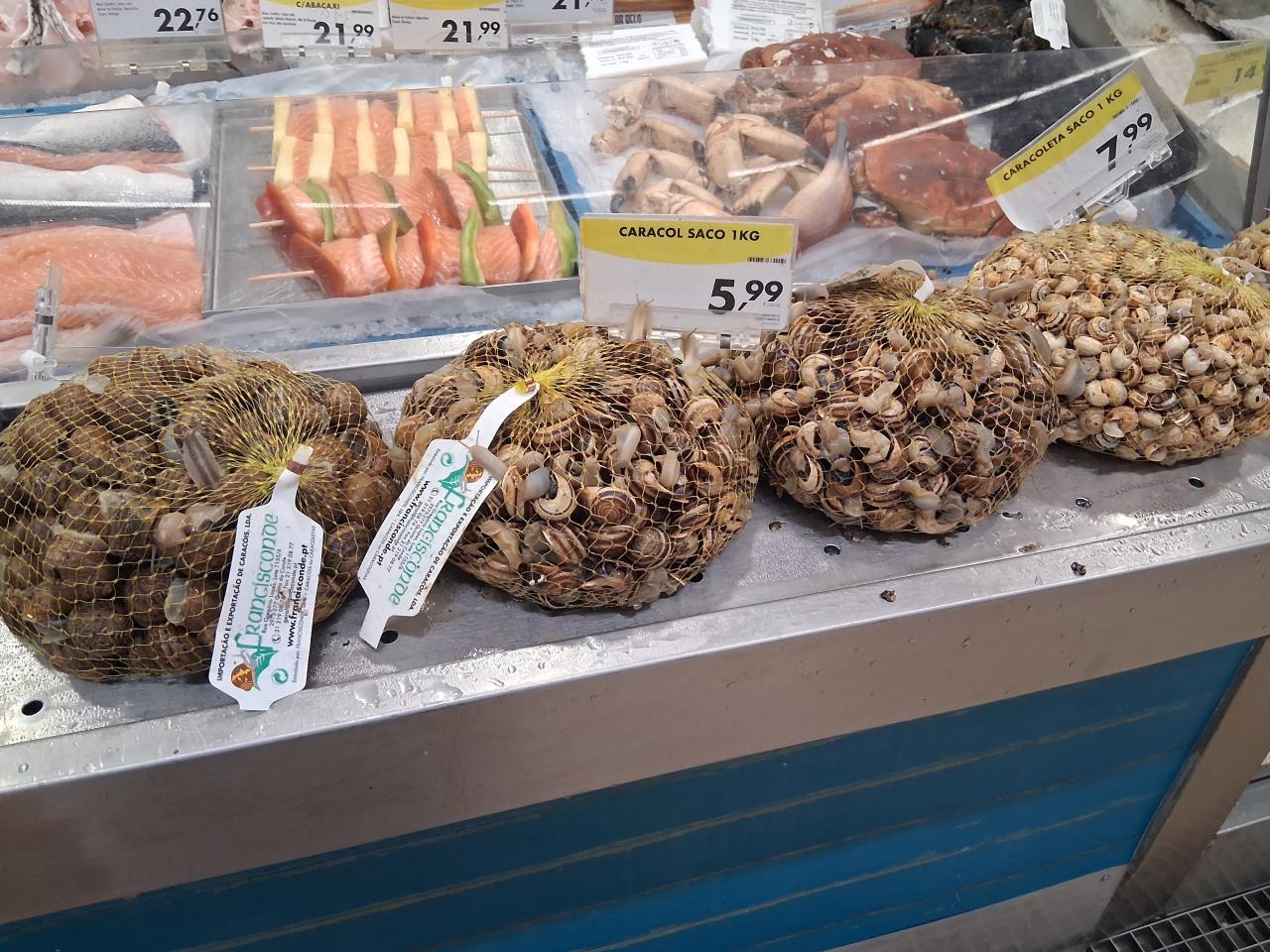 カタツムリは網にいれて売っています。 -