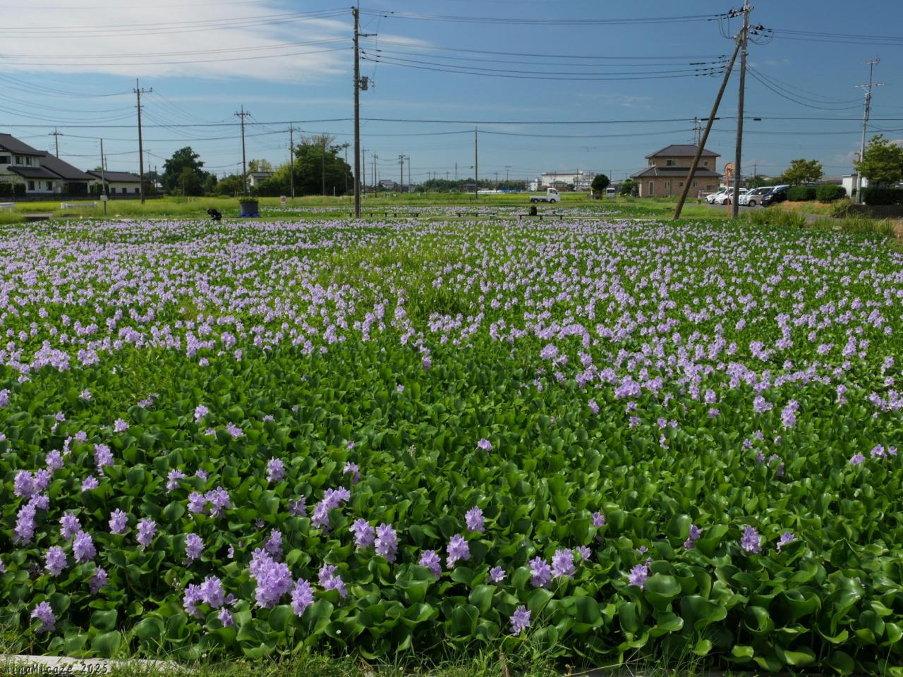 北側の水田には、花の無いところがあり、水面が見えています。
