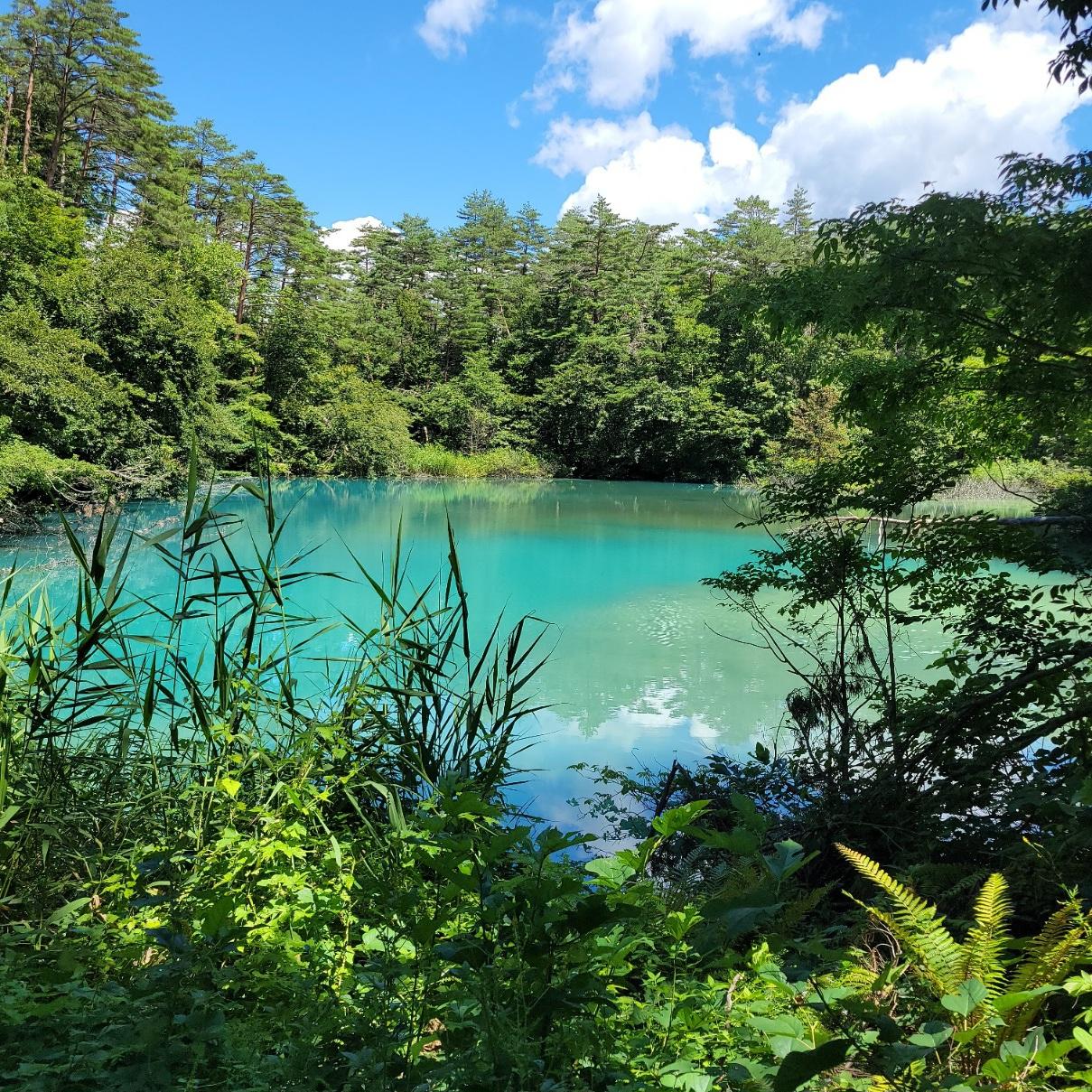 ほどなく美しい青い水をたたえた「青沼」が!!