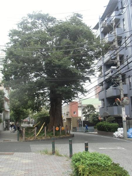 伝通院前の道を東へ進むと、道にはみ出るようにあるムクノキ。