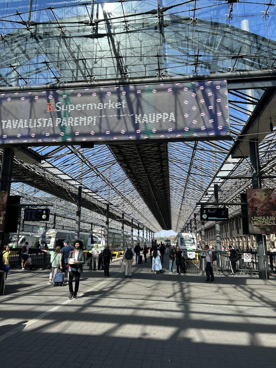 ホテルに戻り、スーツケースをピックアップ、14:30中央駅発の電車で空港に行こうと切符を買いましたが、電車が遅れて表示がどんどん変わり、乗る予定の電車がキャンセルされたりとヤキモキ。15:30に空港に到着、慌てましたが、実際には余裕をもって17:00のヘルシンキ行きフィンエアーに乗れました。