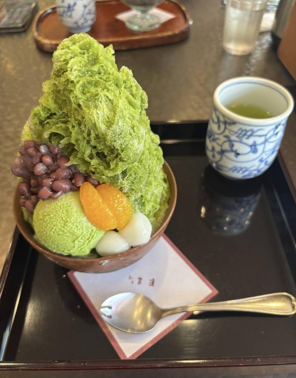 抹茶時雨(かき氷がほんま抹茶味、抹茶アイス最高、白玉もうまし)♪