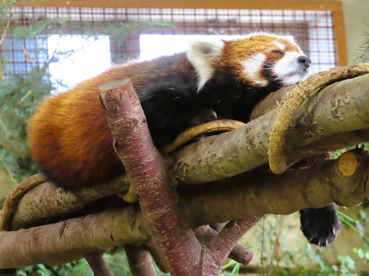 那須どうぶつ王国が避暑地の那須高原にあっても、レッサーパンダは富士山以上の標高の高山に生息するので、夏はやはり暑くて、屋外展示は中止になるます。