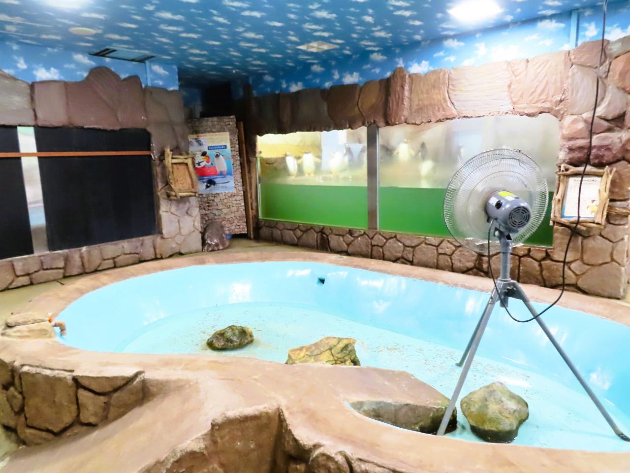 コウモリたちの動きが読めないからか、ガマグチヨタカの両親のエリアはブルーの網がかかって、万が一でもコウモリたちが侵入できないようになっていました。