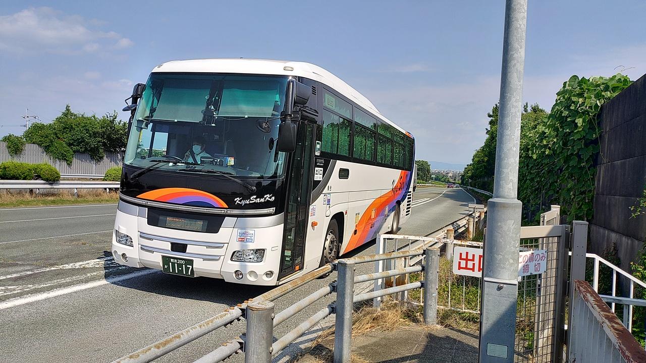 三ツ石駅まで戻って、高速道路沿いを歩いて5分ほどのところにある西合志高速バス停へ向かいます