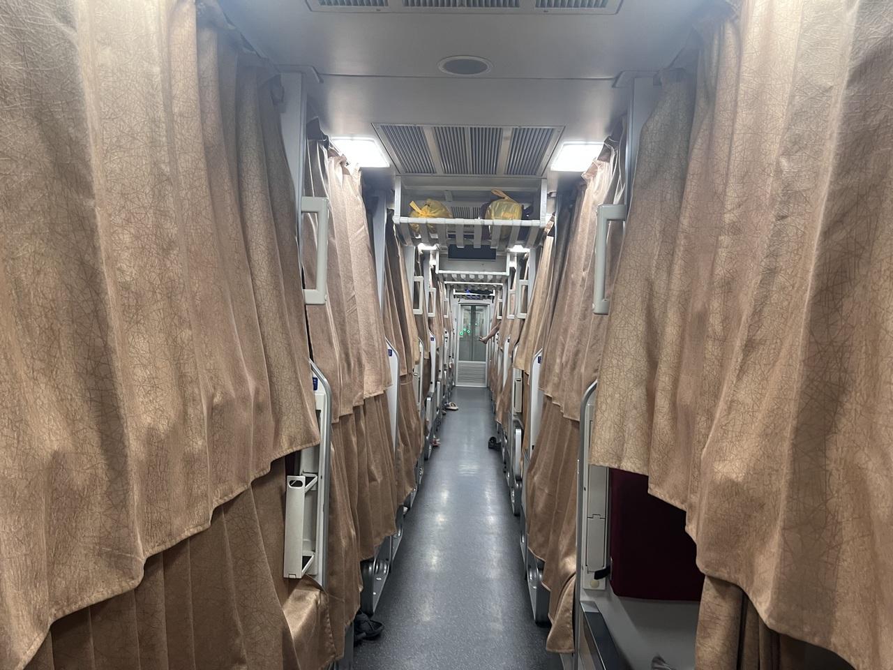 予定より30分遅れてベッドを片付けに来てくれたんだけど、上の青年が起きてこない。係の人が何度か声かけて、他のところを片付けに行くので私は同じ車両の最初から最後まで全部見た(ちょっとイライラ)。開けるよ!ってカーテン開けられてたら、メイク動画撮影中(ライブだったのかな?)でちょっと呆れた。