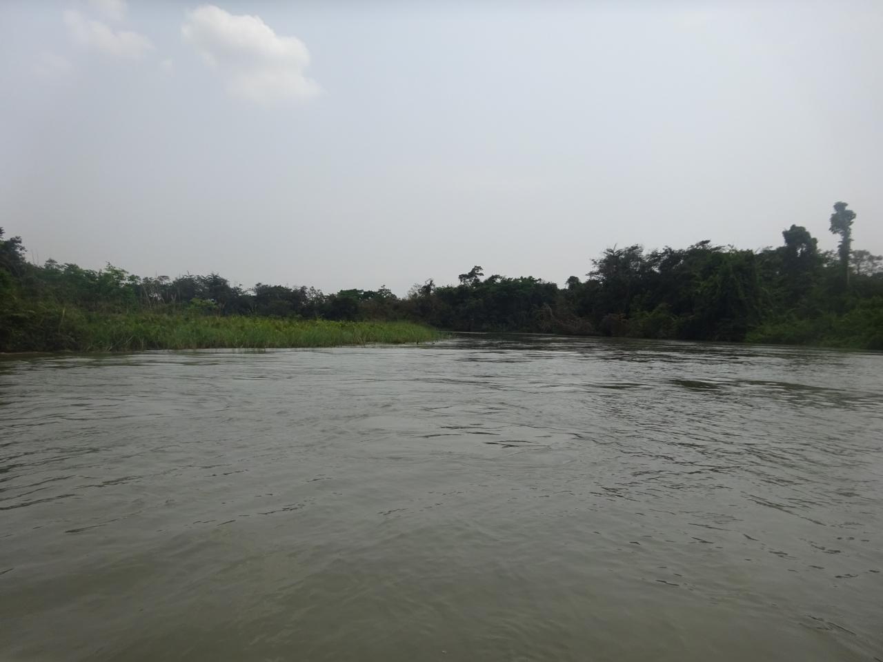 ルナ川上流へボートサファリ(9:56-11:15)(ボート内より、ケブ君(9:56-10:10) 上陸し、ジョミー君(10:25-10:59)と逢い、11:15船着き場へ戻ります。