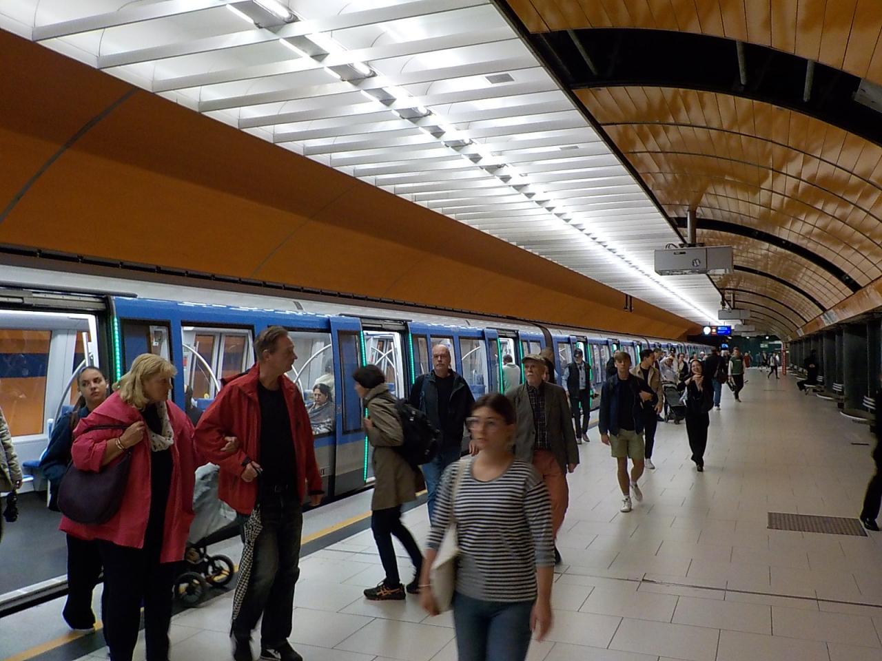 2年ぶりに利用する当地の地下鉄ですが、当時のいかつい、閉扉のときのドタンという大きな音がなくなり、新しい車両は半導体制御ゆえ加速もスムーズで、それよりなにより、従前の抵抗制御車のようにホームとの隙間から熱風がムっと噴出することもなく、快適です。マリエンプラッツ駅 駅