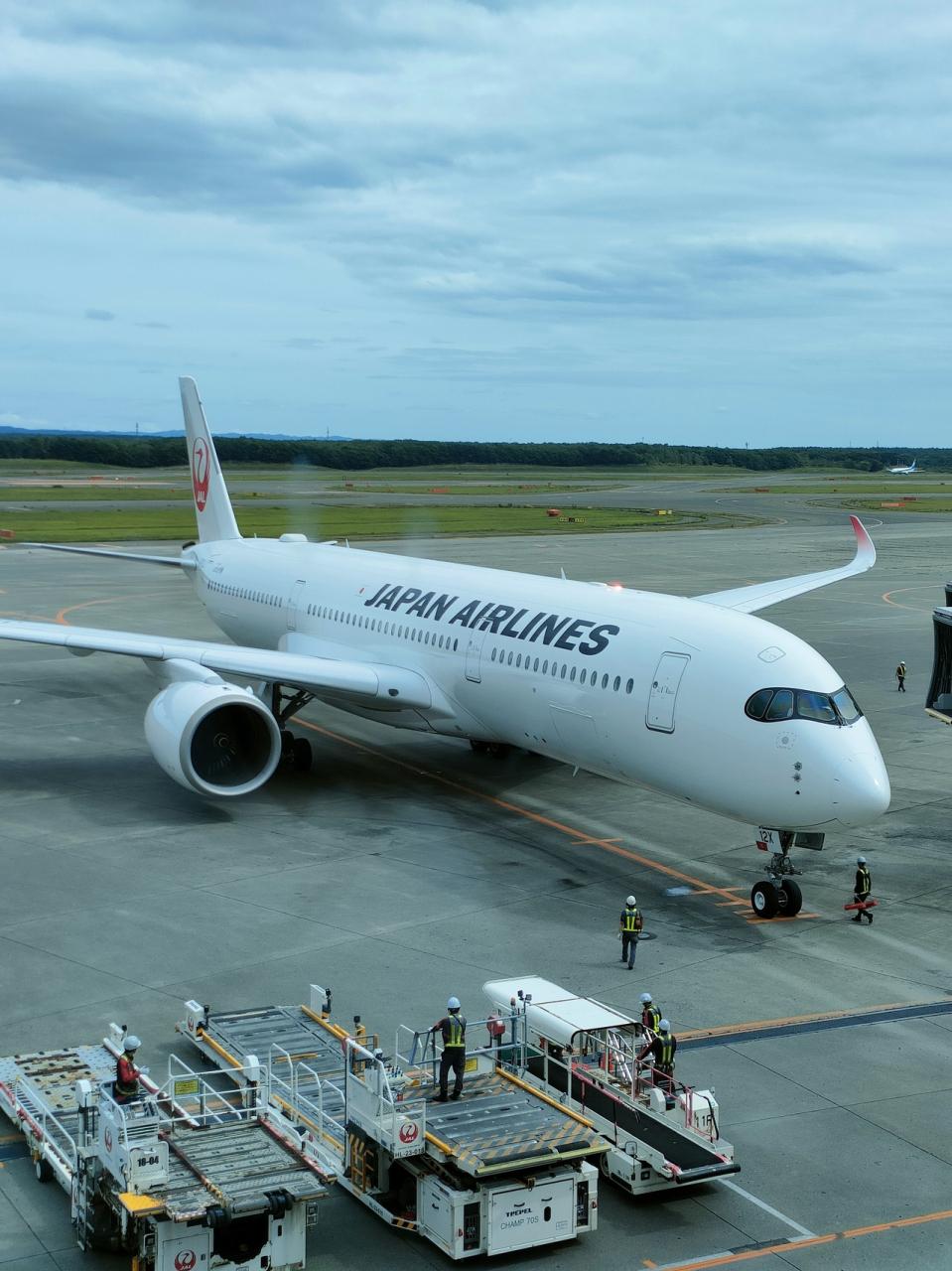窓の外にはJAL機