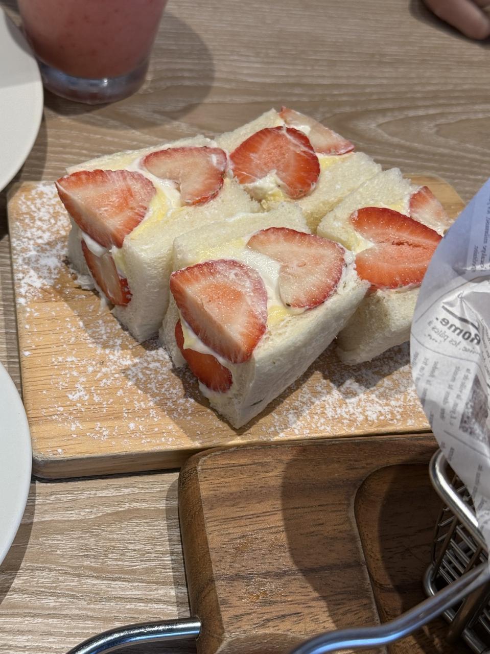 たっぷりクリームがサンドされたパンケーキとイチゴサンドに目が釘付けになりました♪
