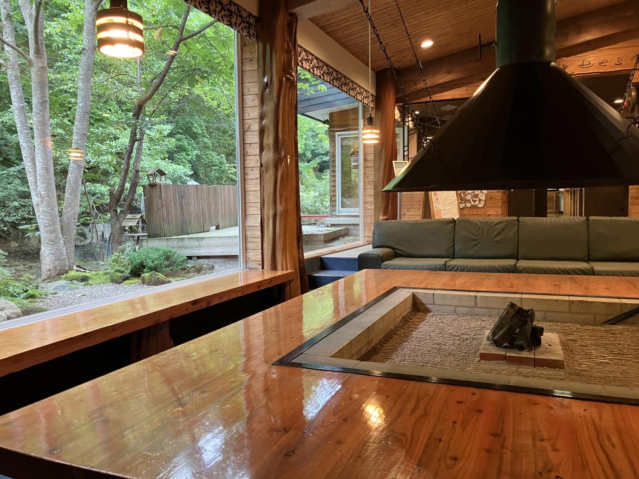 川に面して、大きな窓があり、そこにテーブルを作ってくれているのが、粋な設計です -